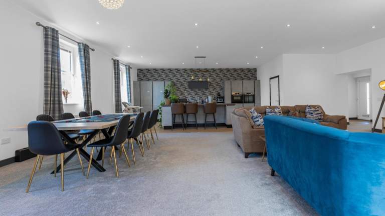 Luxe 5 Bedroom Guardbridge House bietet eine moderne Unterkunft mit einem Whirlpool und verschiedenen Annehmlichkeiten. Die Unterkunft verfügt über eine Terrasse und bietet Gartenblick. Es handelt sich um ein großzügiges Ferienhaus mit fünf Schlafzimmern, einem Wohnzimmer, einer gut ausgestatteten Küche und vier Badezimmern. Zu den zusätzlichen Einrichtungen gehören kostenloses WLAN, ein Kinderspielplatz, Grillmöglichkeiten und eine Sonnenterrasse. Der Check-in ist von 15:00 bis 00:00 Uhr möglich, während der Check-out zwischen 5:00 und 11:00 Uhr erfolgt.