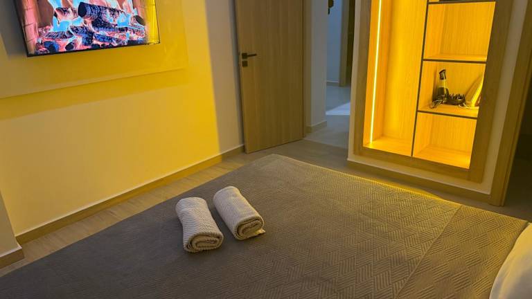 Die Ferienwohnung verfügt über eine Klimaanlage, besteht aus 2 Schlafzimmern, einem Wohnzimmer sowie einer voll ausgestatteten Küche mit Kühlschrank. Es gibt 2 Badezimmer mit Dusche und kostenlosen Pflegeprodukten. Handtücher und Bettwäsche werden zur Verfügung gestellt.