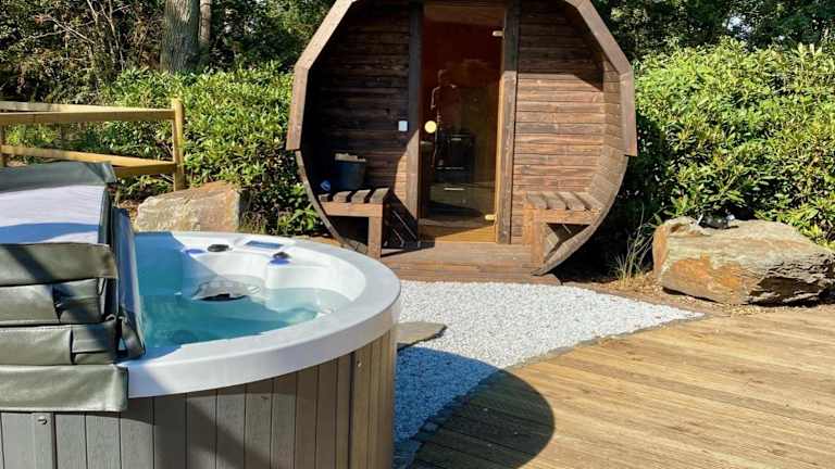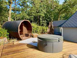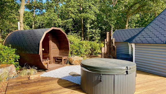 Luxe Finse Kota met Jacuzzi en SaunaBarrel de Zandhoef bietet kostenloses WLAN und einen Garten mit Terrasse und Gartenblick. Die Unterkunft ist mit einer Sauna und einem Whirlpool ausgestattet und ermöglicht den Gästen erholsame Momente.