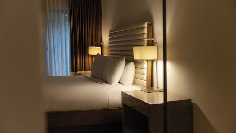 Die Zimmer sind in warmen Farben gehalten und bieten eine Klimaanlage, eine individuell steuerbare Heizung und einen Balkon in den meisten Fällen. Zur Ausstattung gehören ein Doppelbett oder Kingsize-Bett, ein Safe, eine Minibar, ein Schreibtisch, ein Minikühlschrank, eine Mikrowelle und eine Tee-/Kaffeemaschine. Jedes Zimmer ist mit einem Flachbild-TV, einem Radio und kostenfreiem WLAN ausgestattet. Die Badezimmer verfügen über eine Dusche und eine Badewanne, zudem sind Kosmetikartikel, Bademäntel und Haartrockner vorhanden.