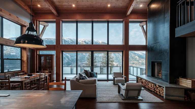 Die Villa Luxe Modern Timberframe - Iconic Panorama Views with AC bietet eine moderne Architektur und einen Garten sowie eine Terrasse. Sie sorgt für einen angenehmen Aufenthalt mit kostenlosem WLAN und Flussblick.