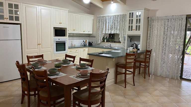 Die Luxe Ranch in Swan Hill ist ein ideales Ferienhaus für einen erholsamen Aufenthalt. Mit einem schönen Garten, einer gemütlichen Bar und Grillmöglichkeiten bietet die Unterkunft alles, was Sie für einen angenehmen Aufenthalt benötigen. Die klimatisierten Zimmer sorgen für Komfort, während das kostenfreie WLAN und die Privatparkplätze für Bequemlichkeit sorgen. Die Lage in der Nähe des Bahnhofs Swan Hill macht es einfach, die Umgebung zu erkunden. Entspannen Sie auf der Sonnenterrasse und genießen Sie die schöne Umgebung.