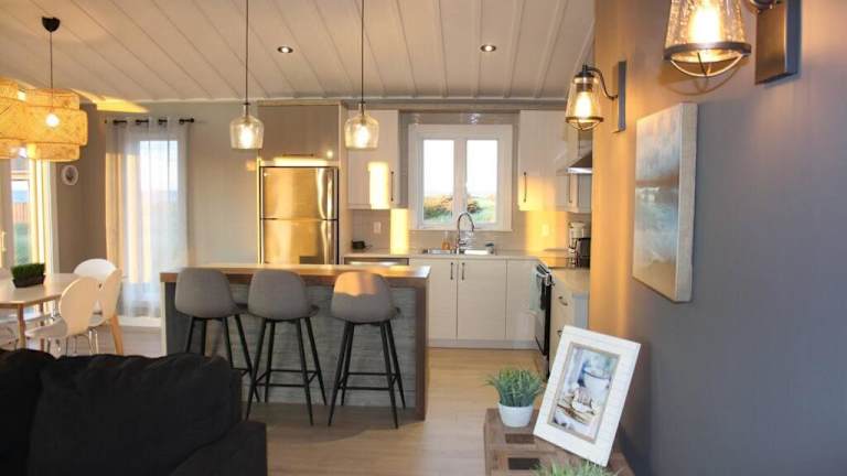 Das Luxueux chalet sur la plage - Baie des Chaleurs ist eine ideale Unterkunft für einen entspannten Strandurlaub in Caraquet, New Brunswick. Das Apartment bietet eine moderne Ausstattung, kostenfreies WLAN und einen eigenen Garten. Genießen Sie die ruhige Atmosphäre und den direkten Zugang zum Strand.
