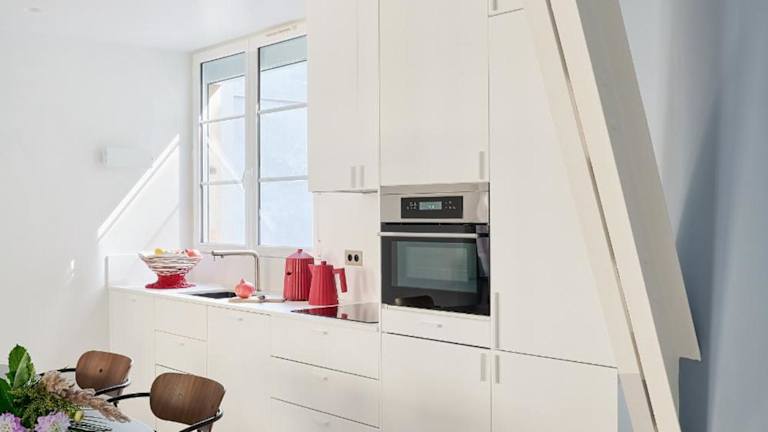 Die Unterkunft Luxueux duplex en plein coeur de Paris dans le 1er arrondissement bietet kostenloses WLAN, Klimaanlage und Haushaltsannehmlichkeiten wie einen Ofen und eine Kaffeemaschine sowie einen Blick auf die Stadt.
