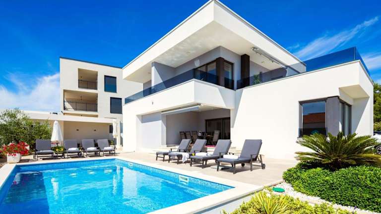 Die Luxuriöse Villa Dolce Vita bietet komfortable Übernachtungsmöglichkeiten mit Gartenblick, einer Terrasse und einem Balkon. Die Unterkunft verfügt über einen eigenen Pool, einen Garten sowie kostenlosen Privatparkplatz.