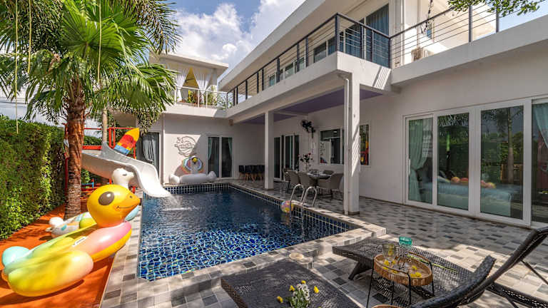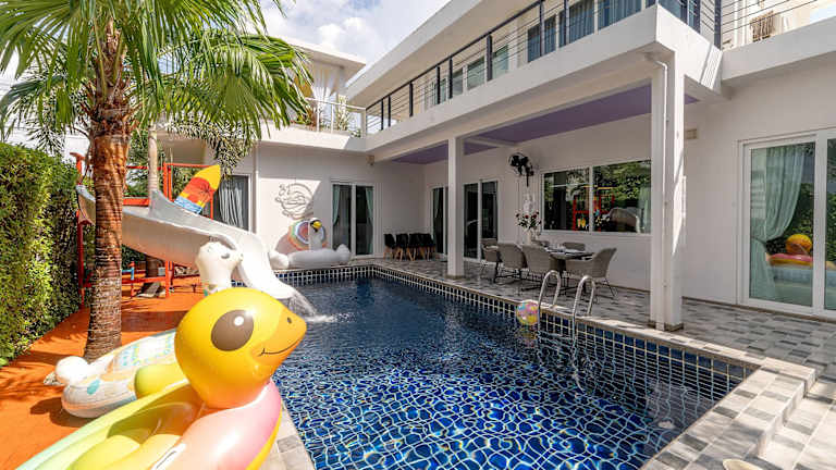 Die Luxurious and Playful 5 Bedroom Pool Villa - CC zeichnet sich durch klimatisierte Übernachtungsmöglichkeiten aus, die mit einem eigenen Pool und Poolblick ausgestattet sind. Die Villa verfügt über eine Veranda sowie einen Balkon und bietet eine Vielzahl von Annehmlichkeiten, darunter einen Billardtisch und kostenloses WLAN. Es handelt sich um eine Nichtraucherunterkunft, die keine Junggesellen-/Junggesellinnenabschiede oder ähnliche Feiern erlaubt. Der Check-in erfolgt zwischen 15:00 und 19:00 Uhr, der Check-out muss bis 11:00 Uhr erfolgen.
