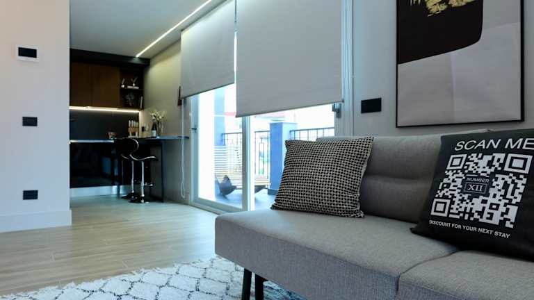 Das Penthouse verfügt über ein Schlafzimmer, ein Wohnzimmer, eine voll ausgestattete Küche mit Kühlschrank und Kaffeemaschine sowie ein Badezimmer mit Bidet und Dusche. Handtücher und Bettwäsche werden bereitgestellt. Die Ferienwohnung ist klimatisiert und bietet schallisolierte Zimmer. Allergikerfreundliche Zimmer sind ebenfalls verfügbar.