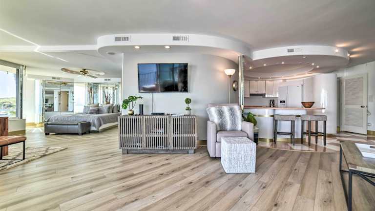Das Apartment im Luxurious Maui Getaway ist stilvoll eingerichtet und bietet ein Schlafzimmer sowie einen Wohnbereich mit Flachbild-Kabel-TV. Die voll ausgestattete Küche verfügt über moderne Geräte wie einen Kühlschrank, einen Geschirrspüler, eine Waschmaschine, einen Backofen und eine Mikrowelle. Handtücher und Bettwäsche werden gestellt, damit Sie sich wie zu Hause fühlen können. Genießen Sie den Komfort und die Annehmlichkeiten dieses luxuriösen Apartments.