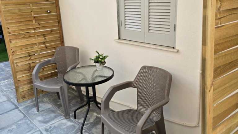 Die Unterkunft besteht aus einem separaten Schlafzimmer und einer voll ausgestatteten Küchenzeile. Die Ferienwohnung ist klimatisiert und bietet eine Terrasse. Kostenfreies WLAN sowie ein Flachbild-TV sind verfügbar. Gartenmöbel und ein Balkon sind ebenfalls vorhanden.