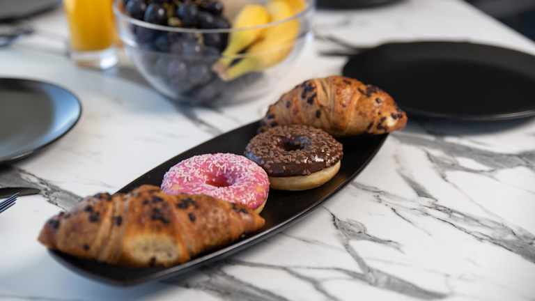 Die Ferienwohnung verfügt über 3 Schlafzimmer, ein Wohnzimmer und eine voll ausgestattete Küche mit Kühlschrank und Kaffeemaschine. Es sind 2 Badezimmer mit Dusche und kostenlosen Pflegeprodukten vorhanden. Handtücher und Bettwäsche werden gestellt.