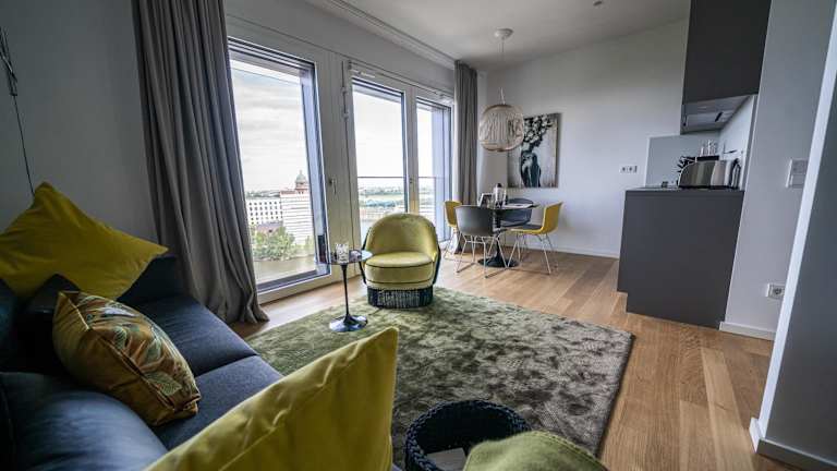 Luxury Apartments Düsseldorf bietet eine Reihe von Annehmlichkeiten, darunter kostenloses WLAN, eine Klimaanlage sowie einen Garten und eine Gemeinschaftslounge. Die Unterkunft verfügt zudem über eine Terrasse mit Flussblick.