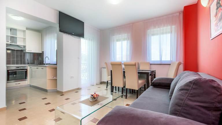 Die Luxury Apartments Kostrena with Pool bieten Ihnen eine komfortable Unterkunft mit kostenfreiem WLAN in Kostrena. Die Apartments sind stilvoll eingerichtet und verfügen über einen gemütlichen Sitzbereich, ein Sofa, einen Flachbild-TV und eine voll ausgestattete Küche mit einem Essbereich. Hier finden Sie alles, was Sie für einen angenehmen Aufenthalt benötigen. Genießen Sie entspannte Stunden am Außenpool oder nutzen Sie den Grill und die Terrasse für gesellige Abende. Die Lage der Apartments ist ideal, um die umliegenden Städte wie Opatija und Rijeka zu erkunden. Der Flughafen Rijeka ist ebenfalls leicht zu erreichen.