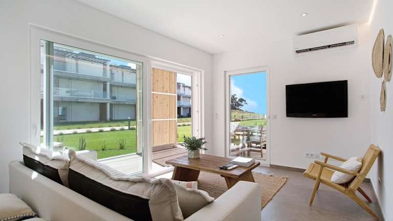 Die Luxury Boho Style Apartment Nazaré ist eine moderne Ferienwohnung, die durch eine ansprechende Boho-Ausstattung und Klimaanlage besticht. Die Unterkunft bietet den Gästen einen Pool und einen Garten und ermöglicht einen komfortablen Aufenthalt mit Meerblick.