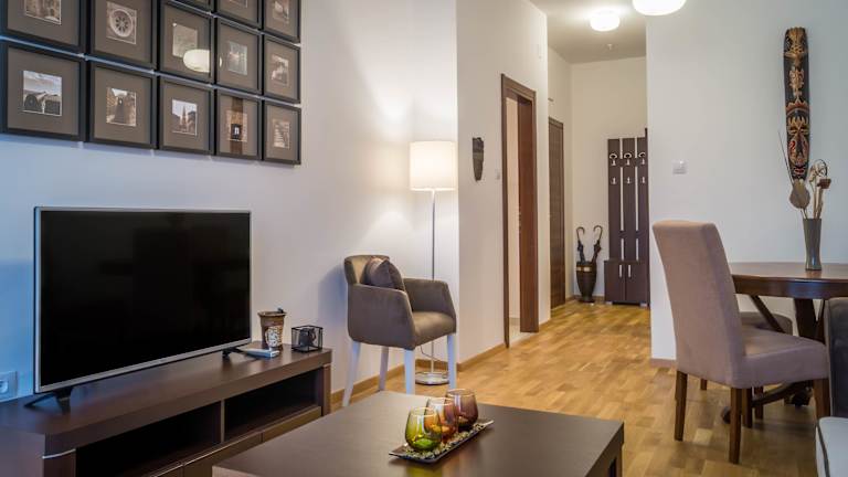 Jede Unterkunft ist mit einem Flachbild-Kabel-TV, einer voll ausgestatteten Küche mit einem Essbereich und einem eigenen Bad mit Dusche, Haartrockner und kostenlosen Pflegeprodukten ausgestattet. Bademäntel und Hausschuhe sind ebenfalls verfügbar. Eine Waschmaschine ist in den Unterkünften vorhanden.