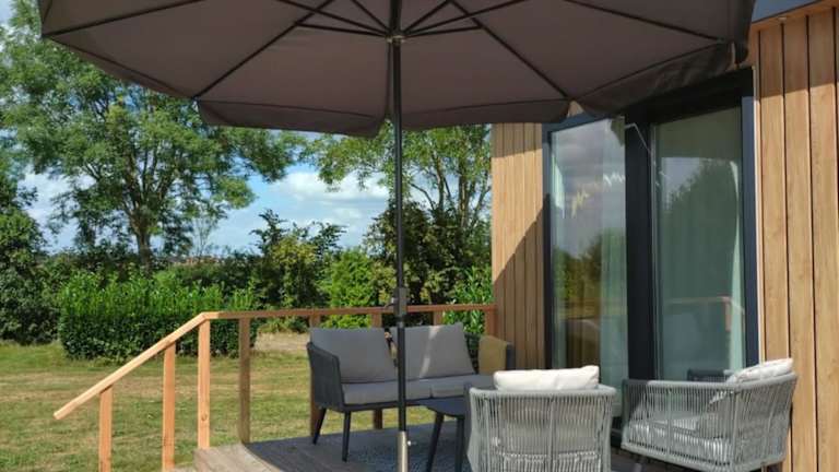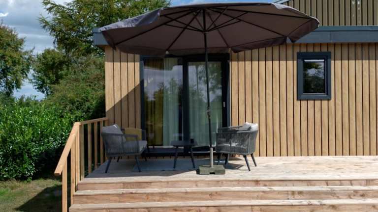 Das Chalet verfügt über zwei Schlafzimmer und ein Wohnzimmer mit Flachbild-TV. Eine gut ausgestattete Küche mit Kühlschrank und Geschirrspüler ergänzt die Einrichtung. Das Badezimmer ist mit einer Dusche ausgestattet. Handtücher und Bettwäsche werden zur Verfügung gestellt. Zu den Annehmlichkeiten gehören zudem Klimaanlage und schallisolierte Zimmer.