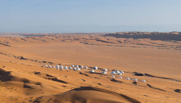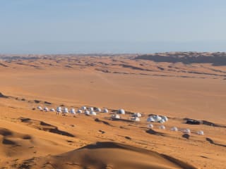 **Luxury Desert Camp** ist das ideale Ziel für Reisende, die das Wüstenleben in komfortablem und luxuriösem Stil erleben möchten. Eingebettet im Herzen der omanischen Wüste, verspricht es ein immersives Erlebnis inmitten ruhiger Landschaften. Die Unterkünfte reichen von Dome-Zelten bis hin zu Royal-Zelten, jedes mit eleganten Innenräumen und modernem Komfort. Besucher können ein Wüstendining-Erlebnis mit köstlichen Mahlzeiten genießen, einschließlich omanischer und traditioneller arabischer Küche. Spannende Aktivitäten wie Kamelreiten und Sandbiken sorgen für Abwechslung und Abenteuer. Tauchen Sie ein in die traditionelle omanische Kultur mit Volksdänzen und Teezeremonien und erleben Sie ein unvergessliches Wüstenabenteuer.