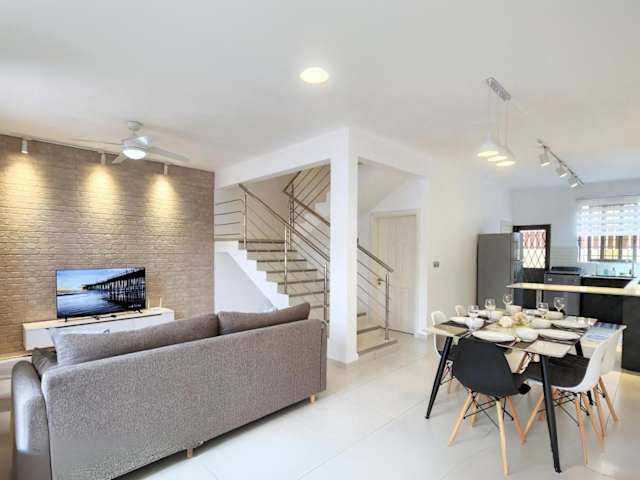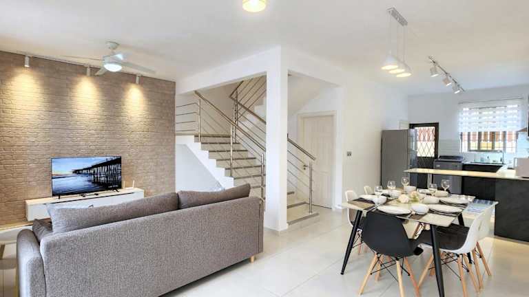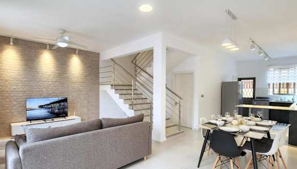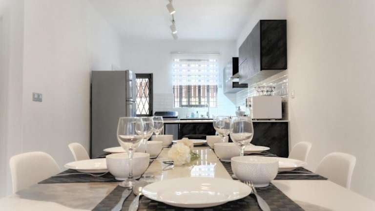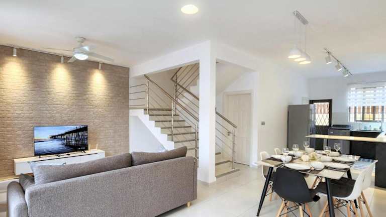 Das Ferienhaus verfügt über Klimaanlage, drei Schlafzimmer, ein Wohnzimmer sowie eine voll ausgestattete Küche mit Kühlschrank und Kaffeemaschine. Es gibt drei Badezimmer, die mit Duschen und kostenlosen Pflegeprodukten ausgestattet sind. Handtücher und Bettwäsche werden zur Verfügung gestellt.