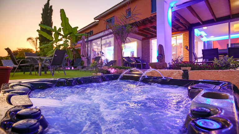 Das Ferienhaus bietet Platz in 3 Schlafzimmern und umfasst ein Wohnzimmer sowie eine voll ausgestattete Küche mit Kühlschrank und Kaffeemaschine. Es verfügt über 2 Badezimmer, die mit einer Dusche und einem Whirlpool ausgestattet sind. Die Unterkunft bietet außerdem einen Balkon sowie Handtücher und Bettwäsche.