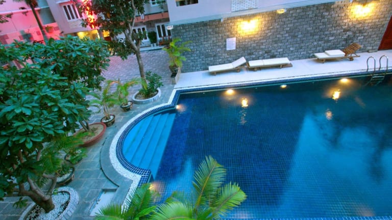 Das Luxury Nha Trang Hotel ist eine zentral gelegene Unterkunft an der Tran Phu Straße, die mit ihrem Außenpool und kostenlosen WLAN einen angenehmen Aufenthalt bietet. Genießen Sie die entspannende Atmosphäre und die Annehmlichkeiten wie Massagen und Sauna. Das hoteleigene Restaurant verwöhnt Sie mit einem reichhaltigen Frühstücksbuffet und einer vielfältigen Auswahl an westlich-asiatischer Küche. Die Zimmer sind komfortabel eingerichtet und einige bieten einen atemberaubenden Blick auf die Nha Trang Bucht. Das freundliche Personal steht Ihnen zur Seite und organisiert gerne Mietwagen, Mietmotorräder und Tagesausflüge für Sie.