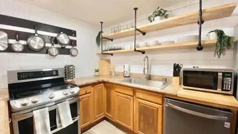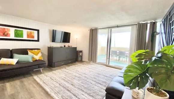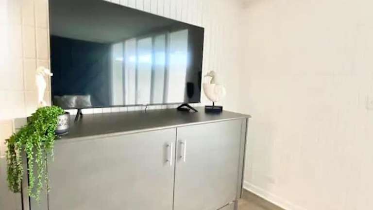 Das Apartment ist klimatisiert und umfasst ein Schlafzimmer sowie eine voll ausgestattete Küche mit Kühlschrank und Geschirrspüler. Kabel-TV ist ebenfalls vorhanden. Handtücher und Bettwäsche werden bereitgestellt.