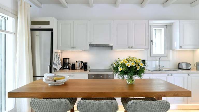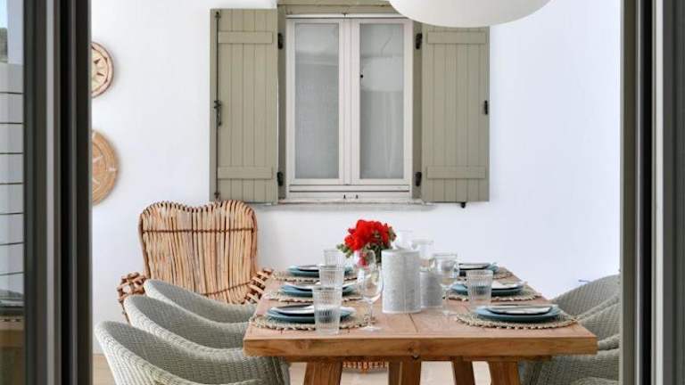 Die Luxury Paros Villa Villa Thoe bietet eine moderne und zeitgenössische Unterkunft mit 3 Schlafzimmern sowie einem eigenen Pool. Die Villa ist klimatisiert und umfasst neben den Schlafzimmern auch eine Küche mit Essbereich und 3 Badezimmer.