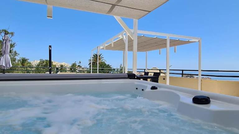 Luxury Penthouse With Sea & Mountain Views & Hot Tub - Tranquility & Rest bietet eine Kombination aus luxuriösem Wohnen und einem entspannenden Ambiente. Die Unterkunft verfügt über einen saisonalen Außenpool, eine Terrasse und eine Bar. Zudem stehen den Gästen kostenfreies WLAN und ein kostenloser Privatparkplatz zur Verfügung.