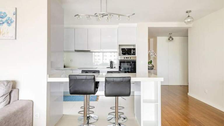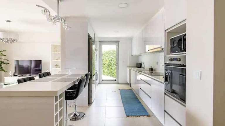 Die Ferienwohnung ist mit einer voll ausgestatteten Küche versehen, die einen Kühlschrank, einen Ofen, eine Mikrowelle, eine Herdplatte sowie eine Waschmaschine umfasst. Handtücher und Bettwäsche werden zur Verfügung gestellt.