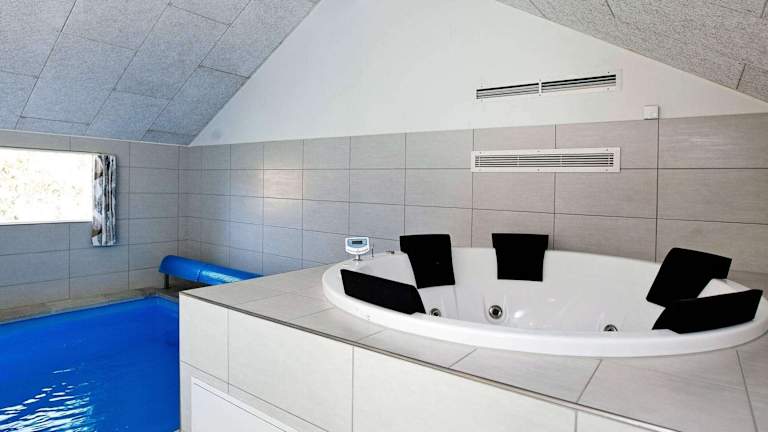 Das Ferienhaus verfügt über 5 Schlafzimmer, ein helles Wohnzimmer sowie eine gut ausgestattete Küche. Zudem sind 3 Badezimmer vorhanden, die mit einer Badewanne oder Dusche und einem Whirlpool ausgestattet sind.