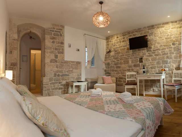 Das Luxury Room Kokola bietet Ihnen die einzigartige Möglichkeit, im Herzen der Altstadt von Split zu wohnen und das UNESCO-Welterbe in einem historischen Gebäude zu erleben. Das klimatisierte Zimmer auf der 1. Etage bietet modernen Komfort mit Steinmauern und Parkettböden. Genießen Sie die zentrale Lage, nur wenige Schritte vom Diokletianpalast und vielen Geschäften, Restaurants und Bars entfernt. Die Strände und Naturlandschaften sind ebenfalls leicht zu erreichen.