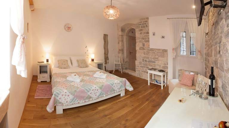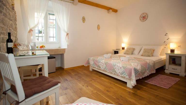 Das Luxury Room Kokola bietet Ihnen ein komfortables Zimmer auf der 1. Etage eines Privatgebäudes. Das Zimmer ist klimatisiert und verfügt über Parkettböden, Steinmauern und eine moderne Einrichtung. Zur Ausstattung gehören ein Smart-TV, ein Kühlschrank und kostenloses WLAN. Das private Badezimmer ist mit einem Haartrockner und kostenfreien Pflegeprodukten ausgestattet. Hier können Sie sich nach einem erlebnisreichen Tag in Split entspannen und erholen.