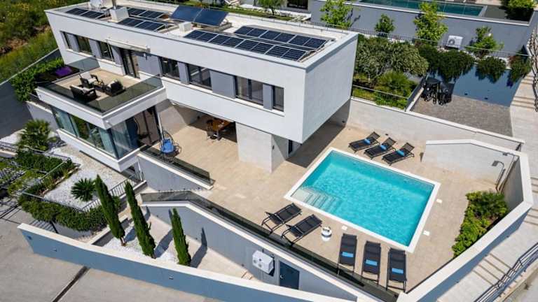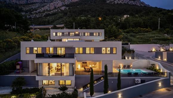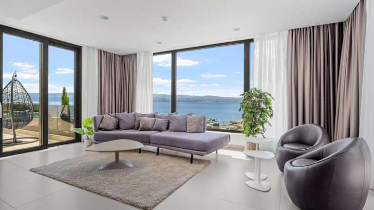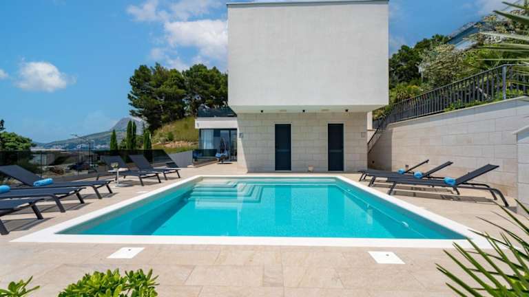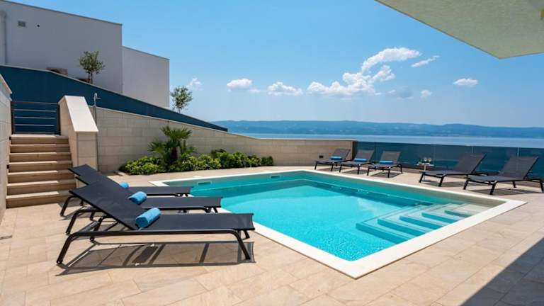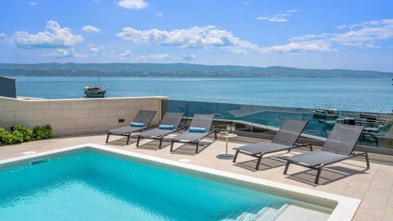 Luxury, seafront Villa Petra bietet klimatisierte Übernachtungsmöglichkeiten mit einem eigenen beheizten Pool und Meerblick. Die Villa ist direkt am Strand gelegen und bietet Zugang zu einer Terrasse sowie einem Garten. Kostenlose Parkmöglichkeiten stehen ebenfalls zur Verfügung.