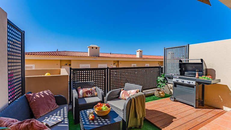 Das Ferienhaus besteht aus 2 Schlafzimmern, einem Wohnzimmer und einer voll ausgestatteten Küche mit Kühlschrank und Kaffeemaschine. Es gibt 3 Badezimmer mit Bidet und kostenlosen Pflegeprodukten. Handtücher und Bettwäsche werden bereitgestellt. Klimaanlage und schallisolierte Zimmer sind ebenfalls vorhanden.