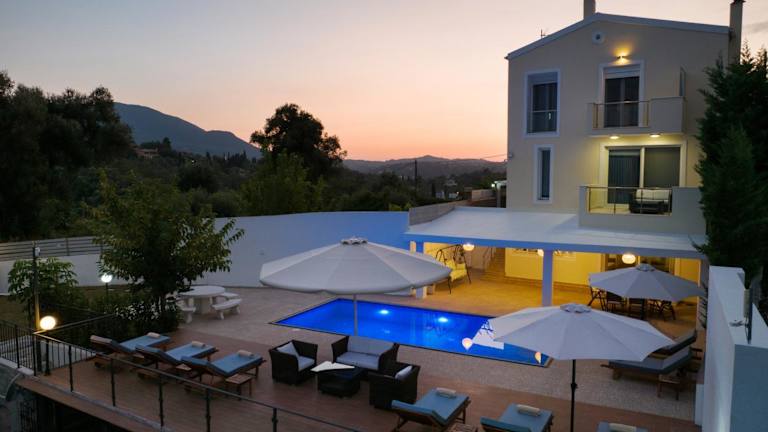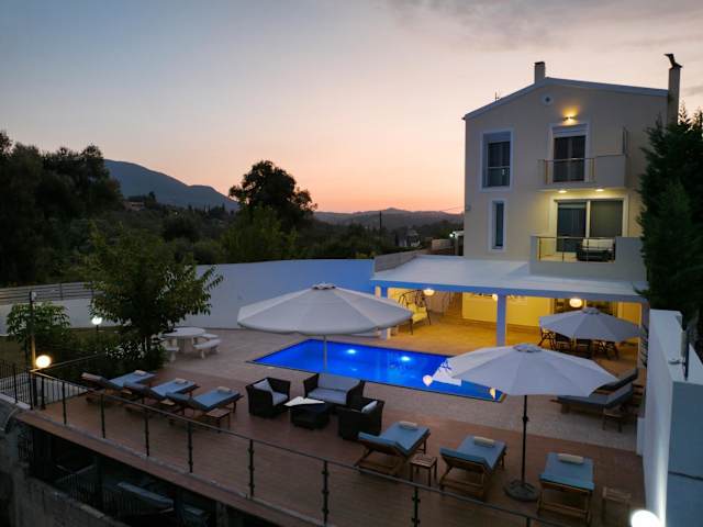 Die Luxury Villa Alexandros Corfu bietet eine Unterkunft mit einem Außenpool, einem Garten und einer Terrasse. Es handelt sich um eine private Villa, die über 4 Schlafzimmer und 3 Badezimmer verfügt. Die Einrichtung umfasst Bettwäsche, Handtücher und einen Flachbild-TV. Ein eigener Pool sowie ein kostenloser Privatparkplatz sind ebenfalls vorhanden. Die Nutzung ist für Gäste ab 18 Jahren und Haustiere sind nicht gestattet.