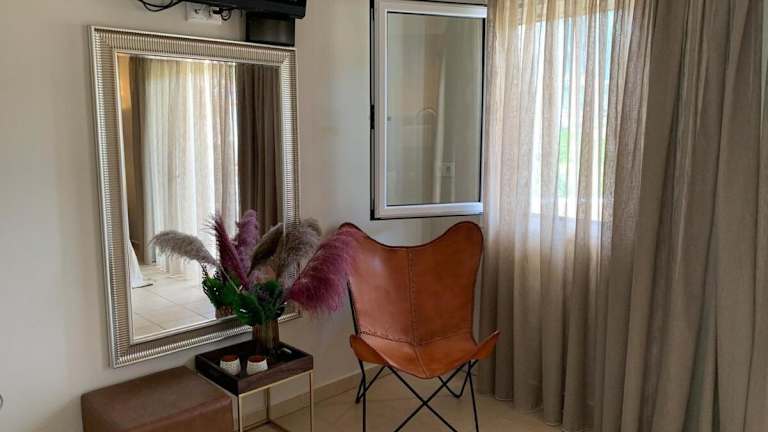 Die Unterkunft befindet sich in der Nähe des Strands Vagionia Beach und bietet Stadtblick sowie Zugang zu einem Garten, einer Terrasse und einem Tennisplatz. Der nächstgelegene Flughafen ist der Flughafen Athen-Eleftherios Venizelos, welcher 150 km entfernt liegt.