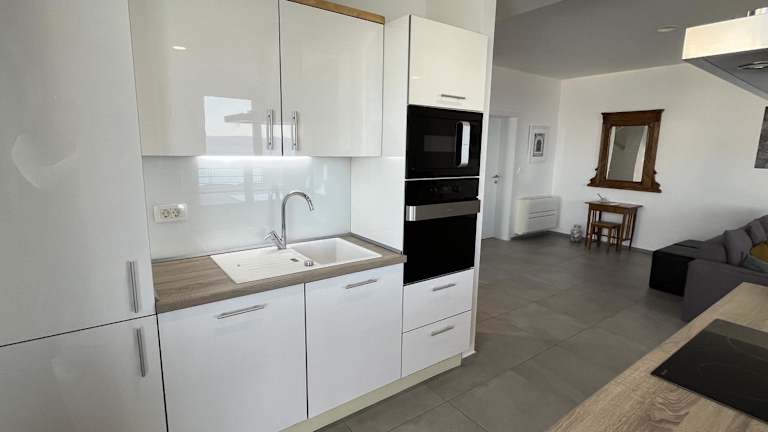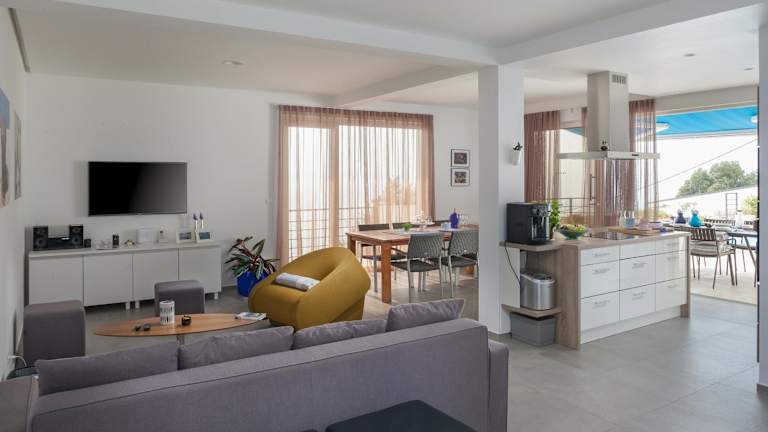 Die Villa umfasst vier Schlafzimmer und ein Wohnzimmer. Die voll ausgestattete Küche ist mit einem Kühlschrank und einer Kaffeemaschine ausgestattet. Für die Hygiene stehen fünf Badezimmer mit Dusche und Whirlpool zur Verfügung. Bettwäsche und Handtücher werden bereitgestellt.