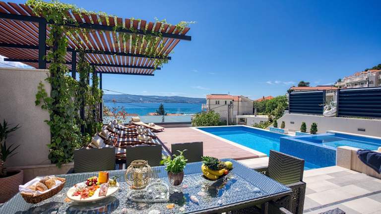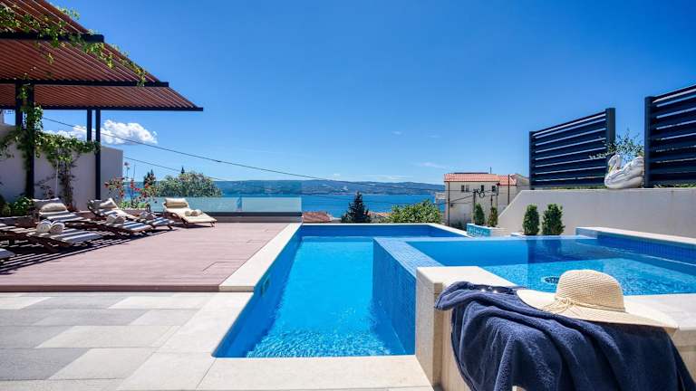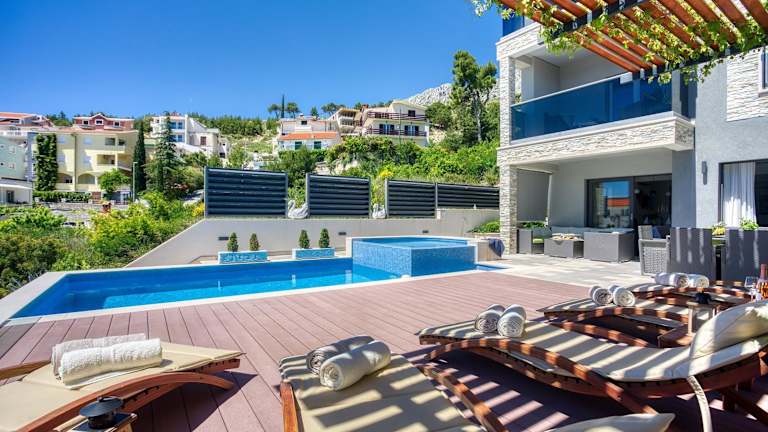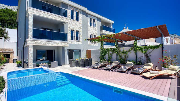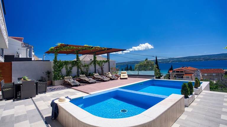 LUXURY VILLA PARADISE bietet Übernachtungsmöglichkeiten mit kostenlosem WLAN und Klimaanlage. Die Villa verfügt über einen Außenpool, eine Terrasse sowie einen Grillbereich. Es stehen kostenlose Privatparkplätze zur Verfügung und die Unterkunft eignet sich für bis zu 12 Personen.