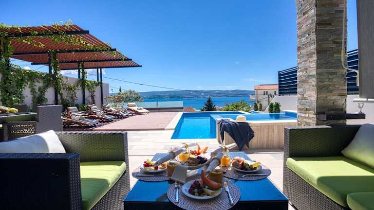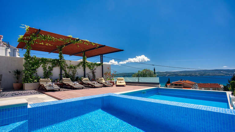 Die Unterkunft befindet sich in Duće, nur 200 m vom Oststrand Golubinka und 300 m vom Strand Golubinka Weststrand entfernt. Der Strand Vavlje Beach ist 400 m entfernt, während sich das Mladezi Park-Stadion in 23 km Entfernung befindet. Der nächstgelegene Flughafen ist der Flughafen Split, 38 km von der Unterkunft.