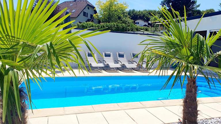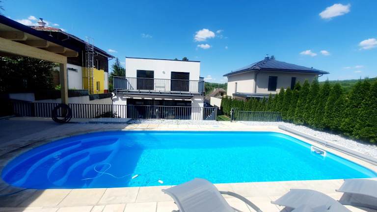 Die Luxury Villa Vienna bietet Übernachtungsmöglichkeiten in einem Ferienhaus mit eigenem Pool und Gartenblick. Die Unterkunft zeichnet sich durch eine Veranda / Patio und kostenloses WLAN aus. Sie bietet Platz für bis zu 6 Personen in 3 Schlafzimmern sowie einem Wohnzimmer.