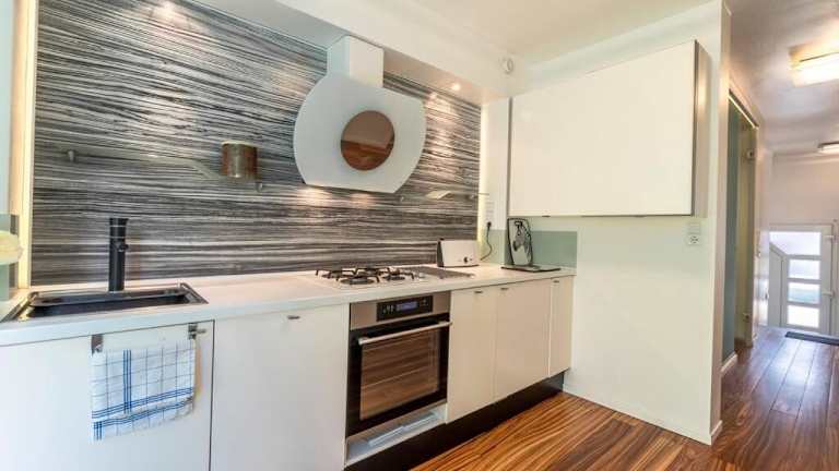 Die Ferienwohnung bietet ein Schlafzimmer und verfügt über moderne Annehmlichkeiten wie einen Flachbild-TV. Die Ausstattung umfasst ebenfalls eine Küche, die mit einem Kühlschrank und Geschirrspüler ausgestattet ist.
