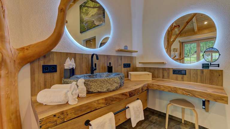 Die Umgebung des Luxus-Chalet Mühlberg bietet vielseitige Sport- und Freizeitmöglichkeiten, darunter Wandern, Skifahren und Fahrradfahren.