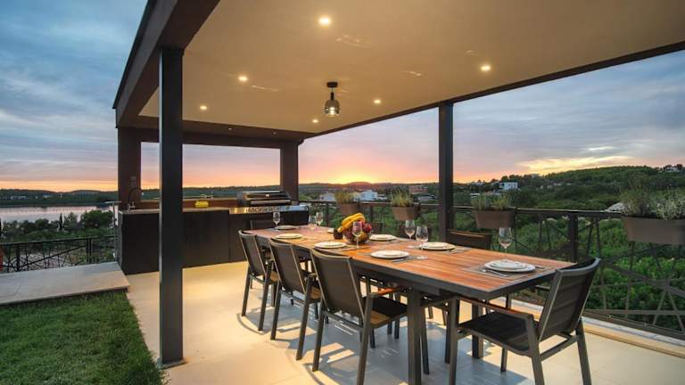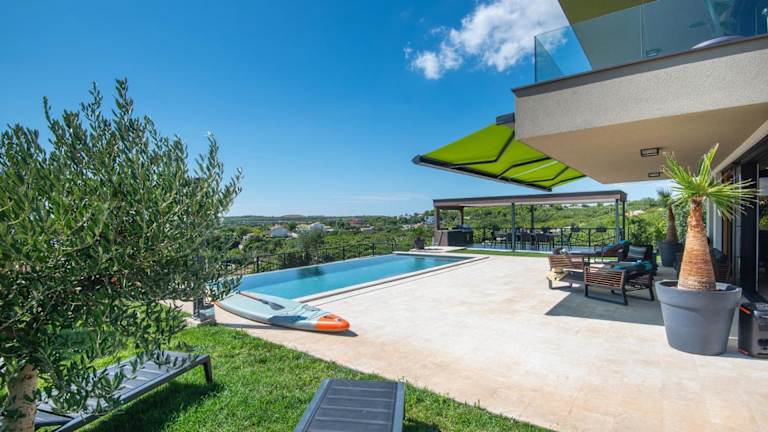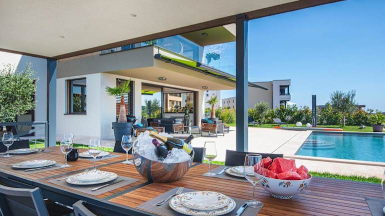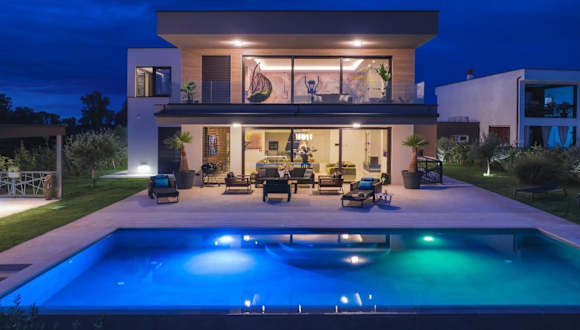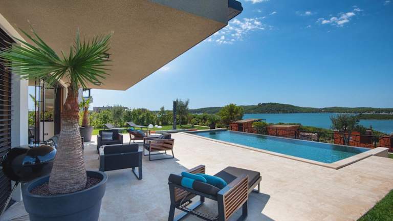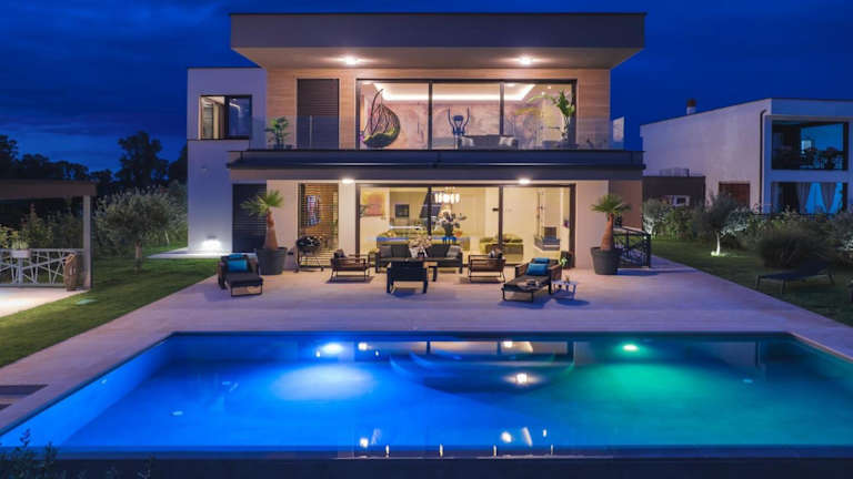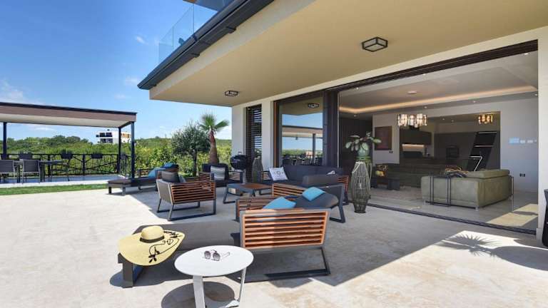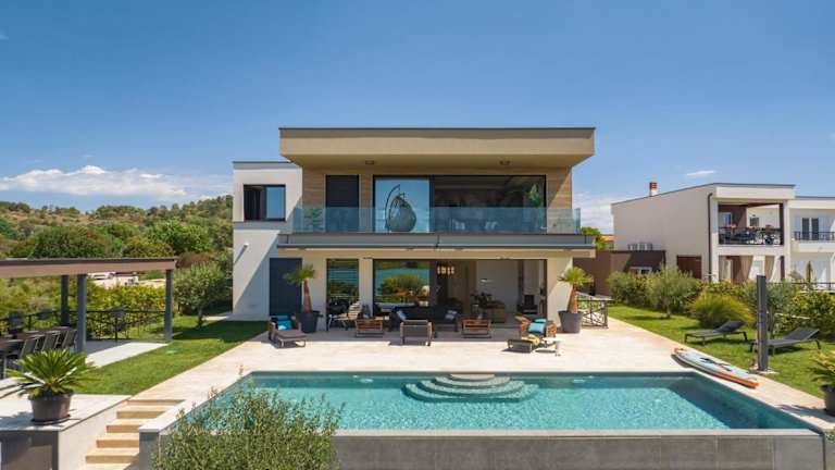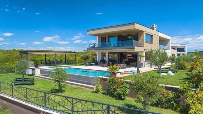 Die Luxus Villa La Casaccia mit Meerblick befindet sich in Medulin, Istrien, in der Nähe zu den Stränden Mukalba und Burle, die beide in einem Abstand von 700 m bis 800 m erreichbar sind. Der Flughafen Pula liegt 11 km entfernt.