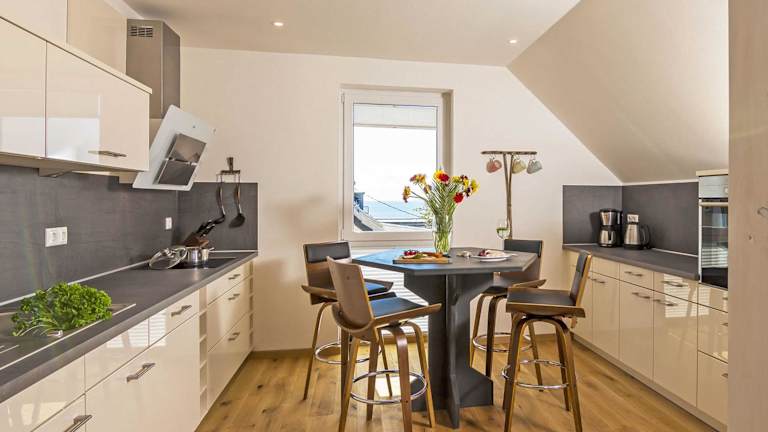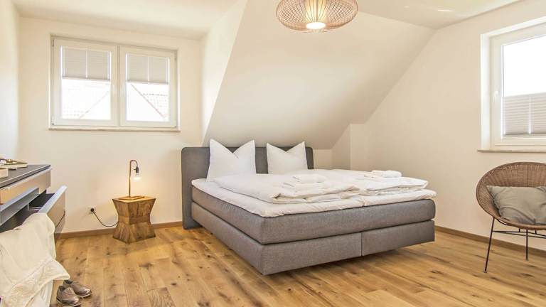 Die Ferienwohnung beinhaltet zwei Schlafzimmer, ein Wohnzimmer mit Flachbild-TV, sowie eine gut ausgestattete Küche mit Kühlschrank und Geschirrspüler. Zudem stehen den Gästen zwei Badezimmer mit Dusche zur Verfügung. Auf Wunsch können Handtücher und Bettwäsche gegen Aufpreis bereitgestellt werden.