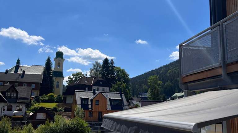 Die Unterkunft befindet sich im Zentrum von Harrachov, in der Nähe des Harrachovský kostelíček, und bietet Bergblick. In der Umgebung gibt es zahlreiche Möglichkeiten zum Wandern, Skifahren und Fahrradfahren. Der Wasserfall Szklarki ist ungefähr 12 km entfernt und der Busbahnhof Szklarska Poręba liegt 14 km entfernt. Der nächstgelegene Flughafen ist der Flughafen Pardubice, 115 km entfernt.