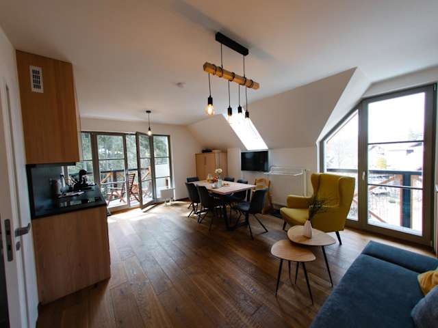 Die Unterkunft befindet sich in Harrachov, nur 12 km vom Wasserfall Szklarki und 13 km vom Bahnhof Ober-Schreiberhau entfernt. In der Nähe finden sich verschiedene Freizeitangebote wie Wandern. Der nächstgelegene Flughafen ist der Flughafen Pardubice, der 115 km entfernt ist.