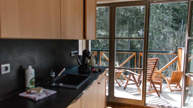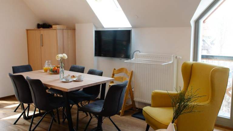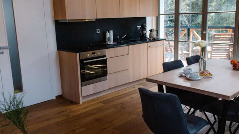 Die Ferienwohnung verfügt über eine Terrasse und umfasst ein Schlafzimmer, ein Wohnzimmer sowie eine gut ausgestattete Küche mit Kühlschrank und Geschirrspüler. Zur Unterhaltung steht ein Flachbild-TV zur Verfügung.