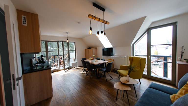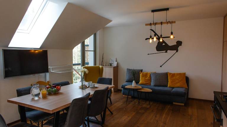 Die Unterkunft Luxusní horský apartmán v centru Harrachova bietet Übernachtungsmöglichkeiten mit schönem Flussblick sowie kostenlosen WLAN-Zugang und Parkmöglichkeiten. Die Ferienwohnung ist gut ausgestattet und richtet sich an Gäste, die eine komfortable und praktische Unterkunft suchen.