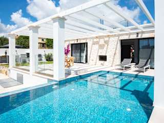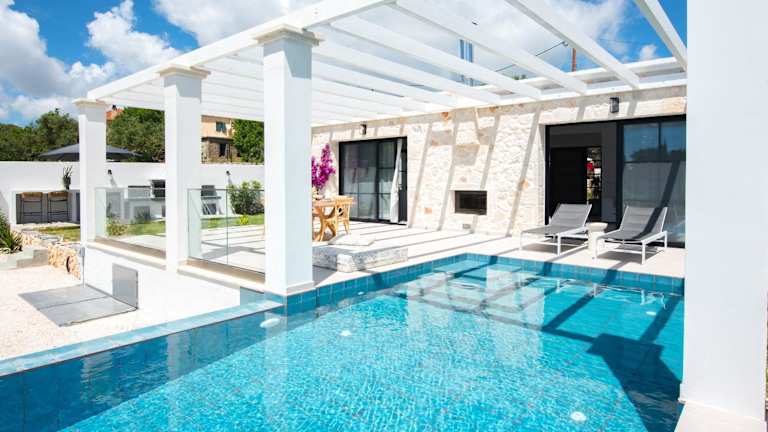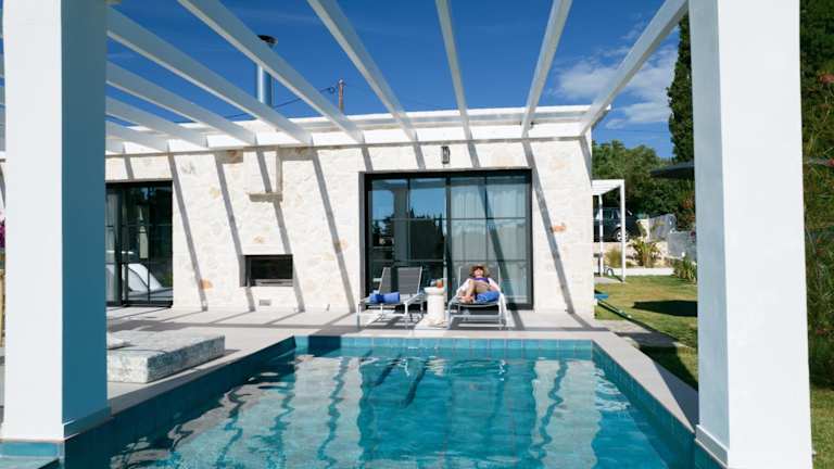 Die Villa ist klimatisiert und umfasst zwei Schlafzimmer, ein Wohnzimmer und zwei Badezimmer, die mit Duschen und kostenlosen Pflegeprodukten ausgestattet sind.