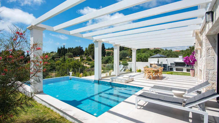 Die Villa bietet eine voll ausgestattete Küche, die mit einem Kühlschrank und einer Kaffeemaschine ausgestattet ist. Des Weiteren steht ein Grill zur Verfügung. Handtücher und Bettwäsche werden bereitgestellt.