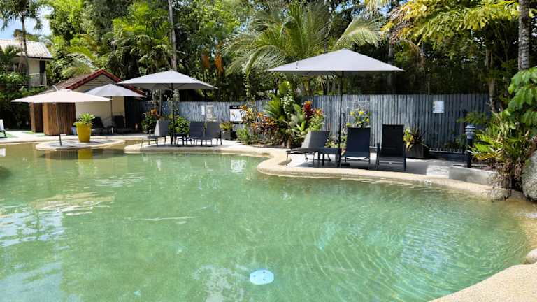 Entspannen Sie am Pool der Lychee Tree Holiday Apartments oder am Wasserfall und lassen Sie die Seele baumeln. Die Liegestühle laden zum Sonnenbaden und Entspannen ein. Die zentrale Lage der Apartments ermöglicht es Ihnen auch, die umliegenden Sehenswürdigkeiten und Naturgebiete wie das Great Barrier Reef, die Mossman Gorge und den Daintree Rainforest zu erkunden. Das Tourenschalter-Team der Unterkunft steht Ihnen bei der Planung und Buchung von Ausflügen und Erlebnissen gerne zur Seite.