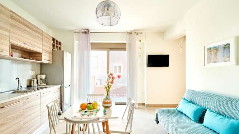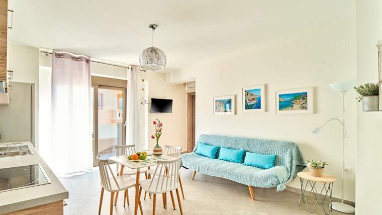 Die Apartments verfügen über einen Sitzbereich, einen Satelliten Flachbild-TV sowie eine voll ausgestattete Küche, die mit einem Kühlschrank, einem Ofen und einer Herdplatte ausgestattet ist. Zur weiteren Ausstattung gehören eine Kaffeemaschine, ein Wasserkocher und ein eigenes Badezimmer mit Dusche und Haartrockner.